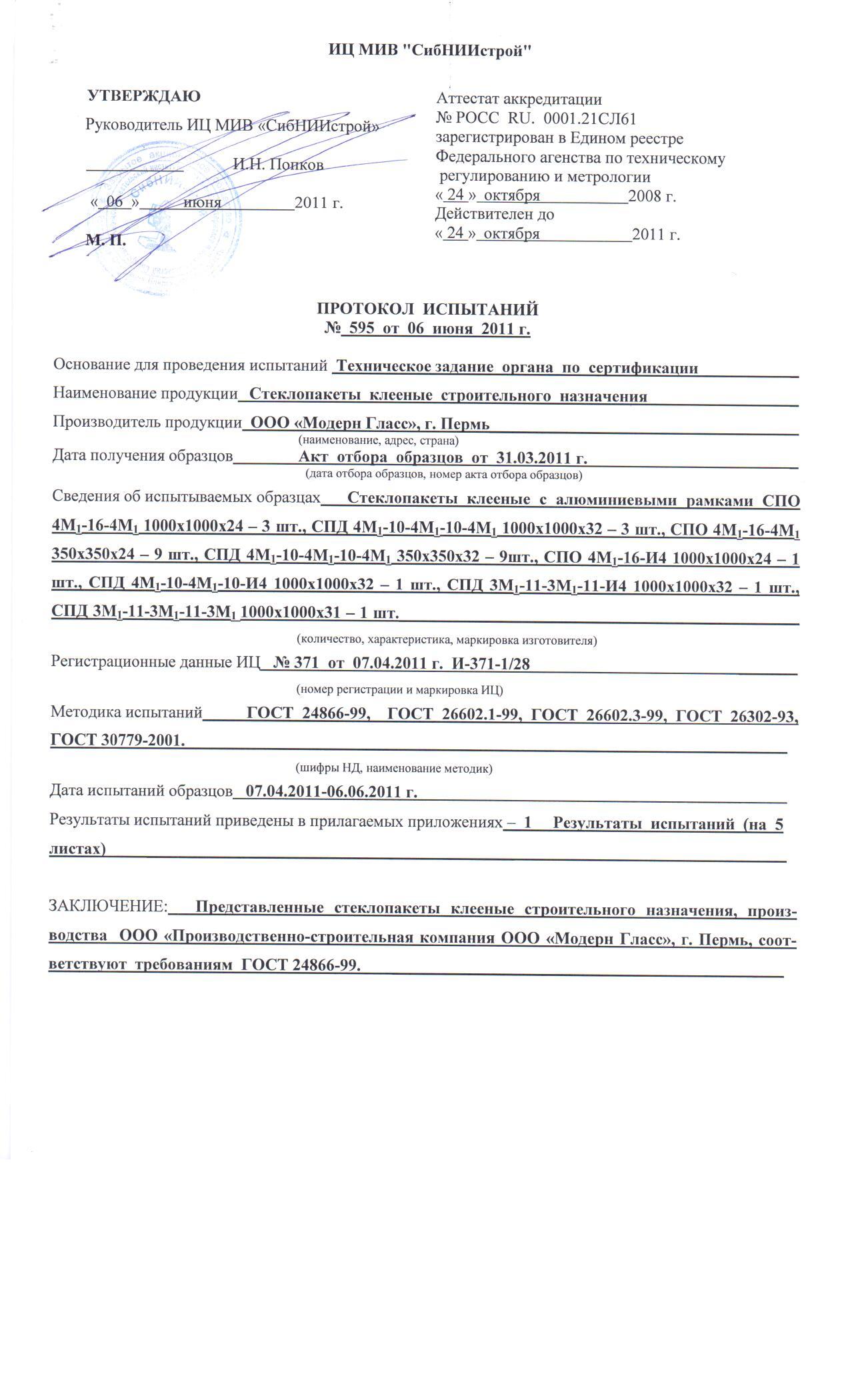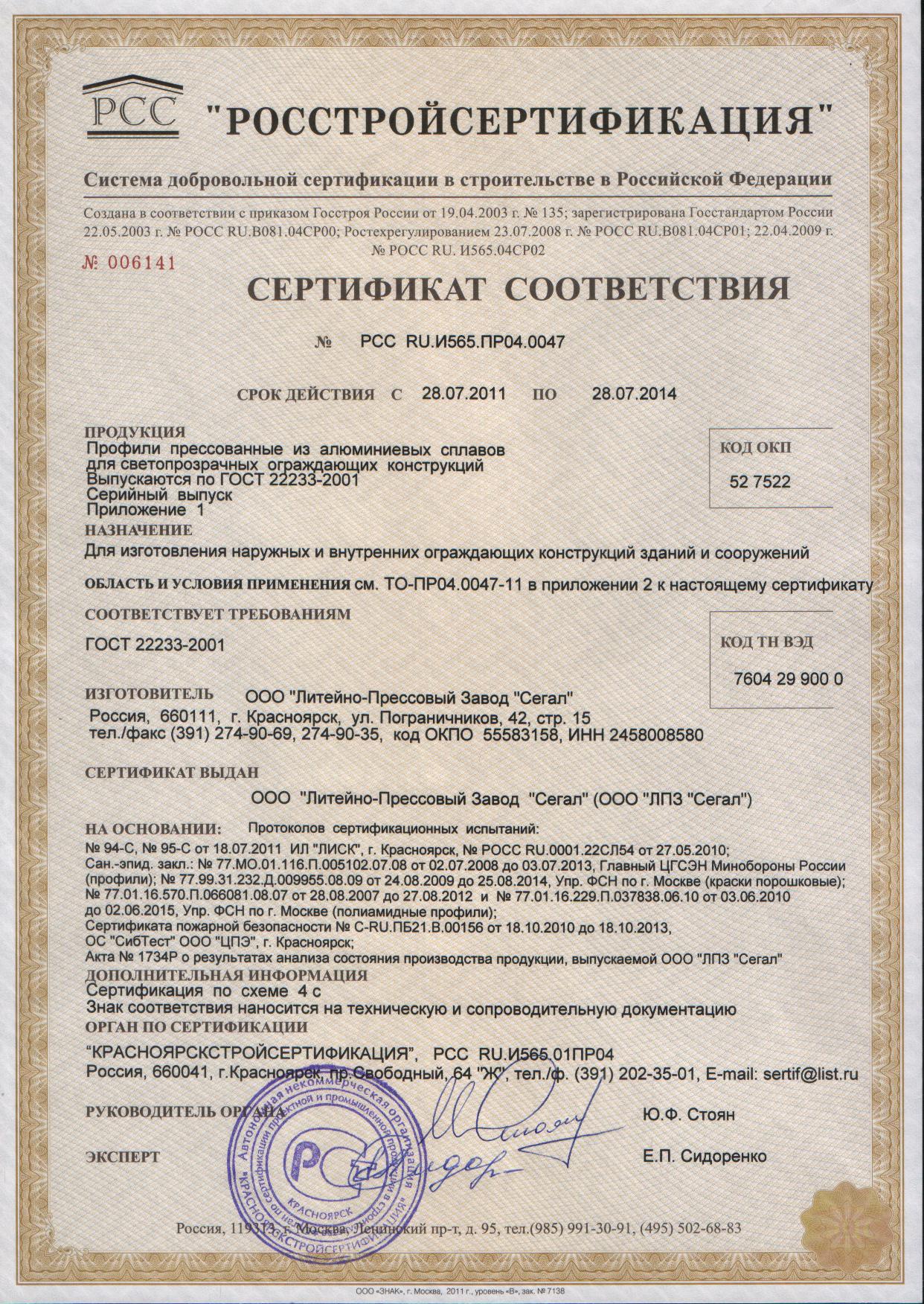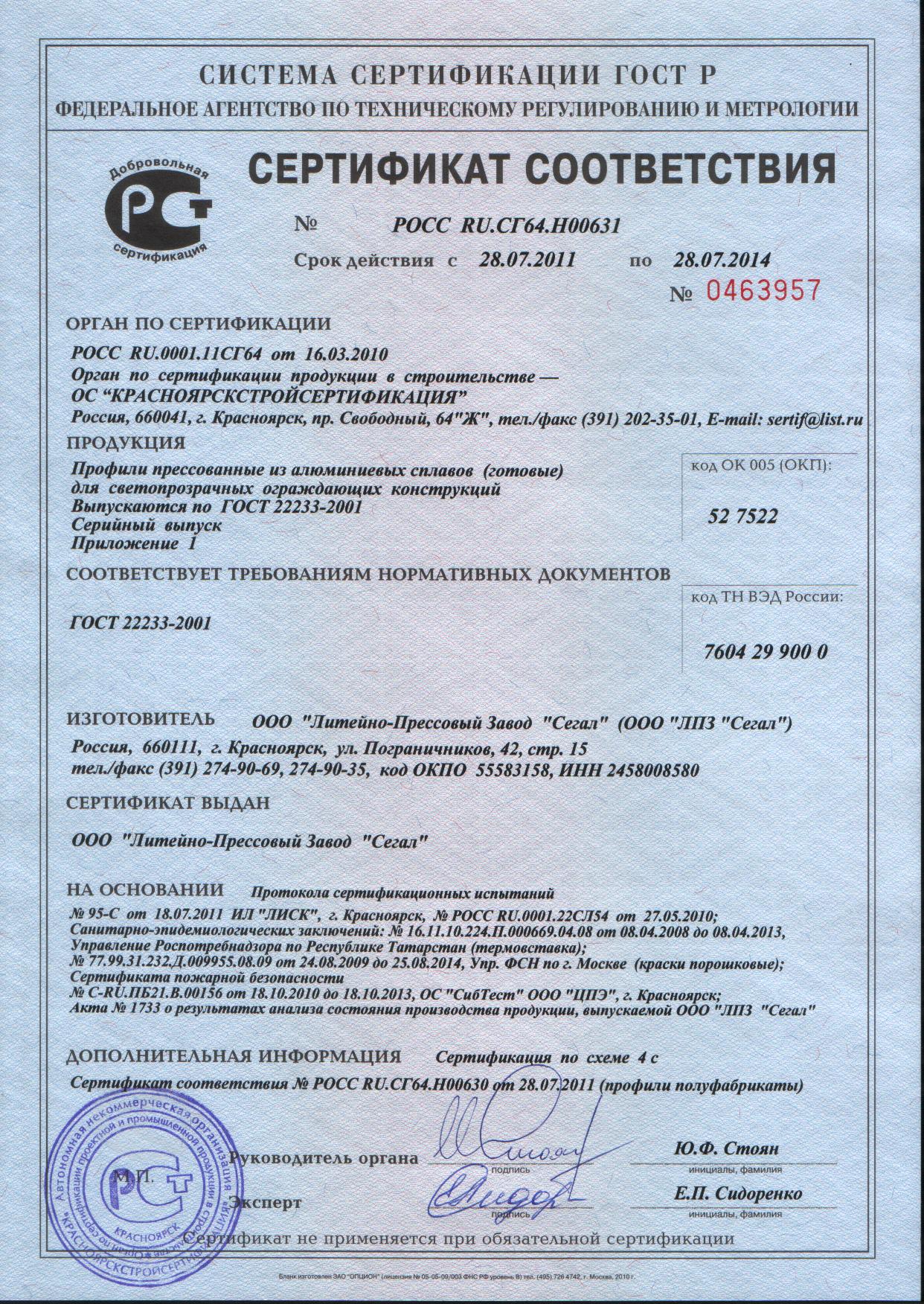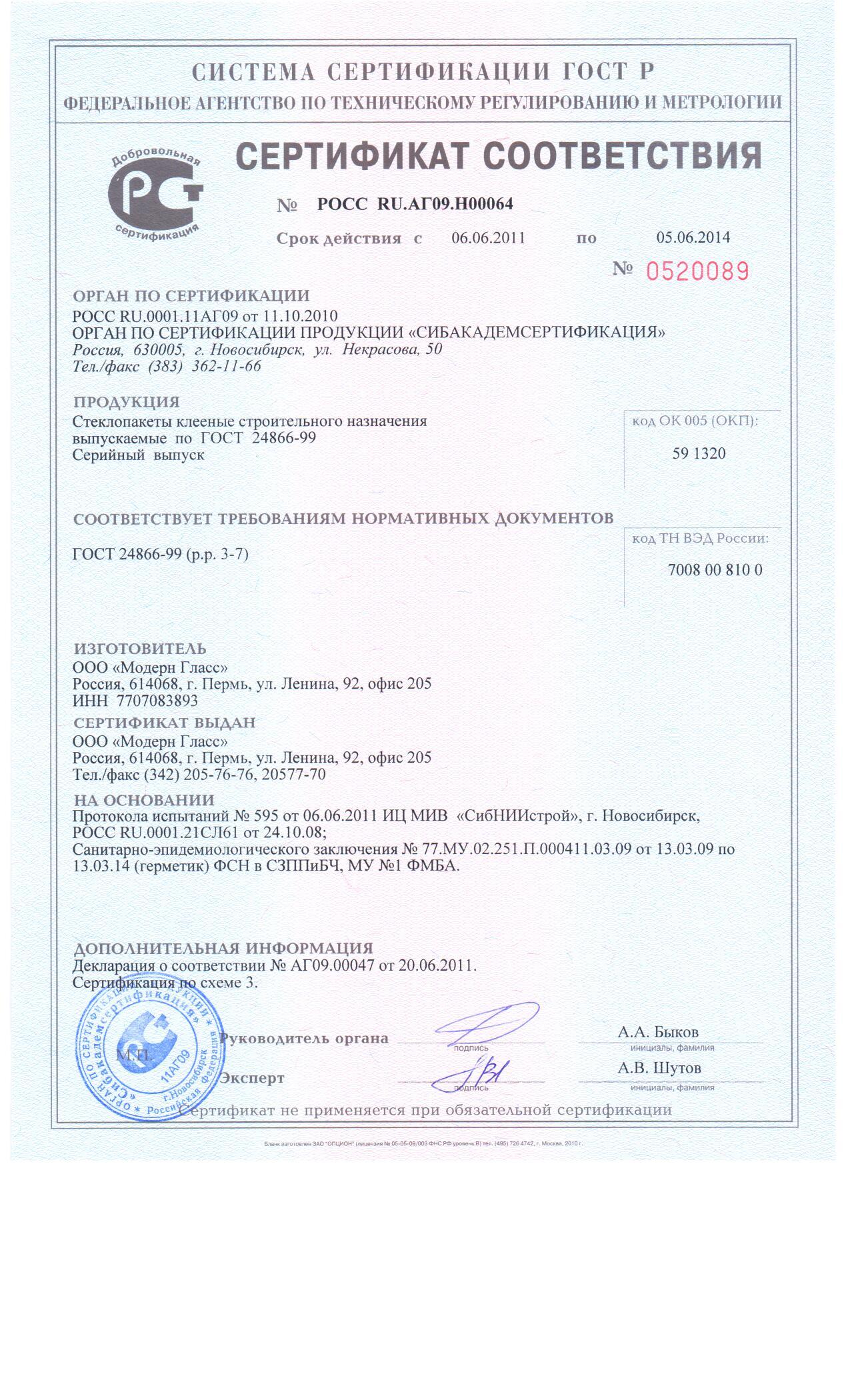 Сертификат на стеклопакеты